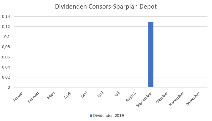 Die erste Dividende des Consors-Sparplan Depots ist im Oktober eingetroffen. Mit 0,13 € fällt diese klein aus, aber sie ist der Startschuss für ein hoffentlich monatliches passives Einkommen, welches jedes Jahr höher wird.