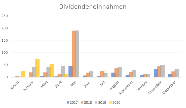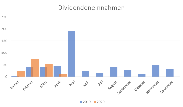 Man sieht hier also schon die ersten Auswirkungen des Corona-Virus auf die Dividenden. Auch wenn es bislang nur eine Verschiebung ist. Aber im Laufe des Jahres werde ich auch noch einige Dividendenkürzungen/streichungen hinnehmen müssen.