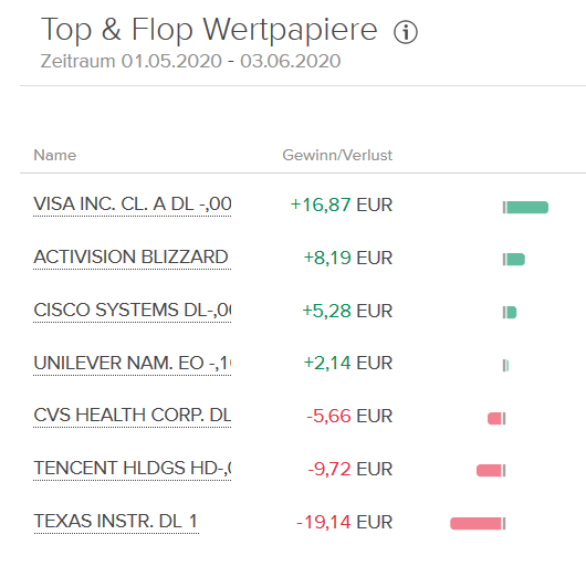 Der beste Wert im Mai war Visa, das freut mich vor allem, da ich hier ja im April nochmal einen Einmalkauf getätigt habe.