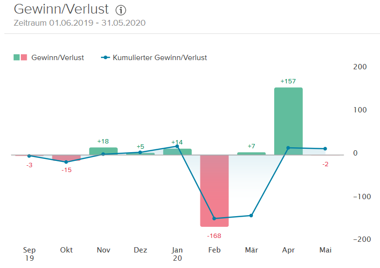Somit lief der Mai ziemlich entspannt, ein bischen auf und ab und am Ende bin ich bei ca. plus-minus 0 € rausgekommen.