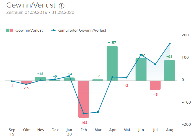 Die Dividendensteigerung im Vergleich zum Monat Mai ist mit + 26,72 % nicht riesig, aber ordentlich. Die Steigerung kommt nur durch die Sparpläne zu Stande, die Unternehmen selber haben die Dividende in den letzten drei Monaten nicht erhöht. Hier schon mehrmals beschrieben nehmen die Steigerungen zum Vorquartal immer mehr ab. Dieser Effekt wird sich auch weiterhin fortsetzen. Insgesamt habe ich in diesem Depot nun schon 20,41 € Dividende erhalten. Und das nach 11 Monaten, hiermit bin ich sehr zufrieden.