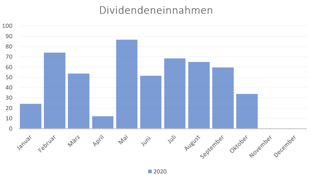 Ich habe in der letzten Monatsübersicht ja bereits geschrieben, dass ich nun eine neue Tennisgruppe habe, beziehungsweise zwei. Das bedeutet für mich in der Theorie 2,5 Stunden, die ich pro Woche mehr trainieren kann. Nun waren im Oktober Herbstferien und das Training hat nur teilweise stattgefunden. Zudem musste ich leider für einige Zeit am Ende Oktober in Quarantäne und auch noch in den Monat November hinein. Somit konnte ich im Oktober (nur) 242 € zusätzlich verdienen, was aber auch schon eine Steigerung gegenüber den Vormonaten ist. Leider konnte ich nun Anfang November auch noch kein Training geben, aber ich bin gespannt, wie viel im Monat November zusammenkommt.