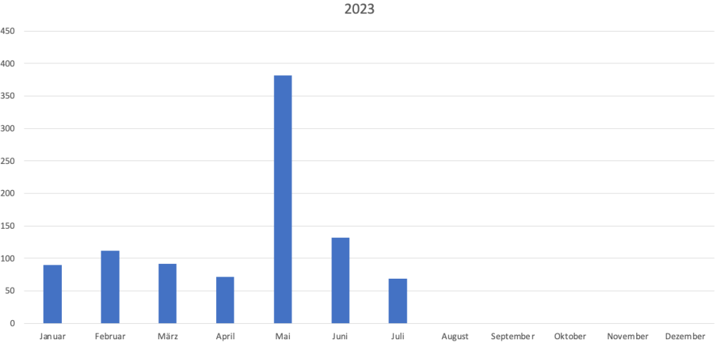 | 2022 | 35,04€ | 118,46€ | 76,41€ | 99,78€ | 354,52€ | 171,18€ | 66,65€ | 60,95€ | 105,73€ | 57,00€ | 237,05€ | 90,91€ |